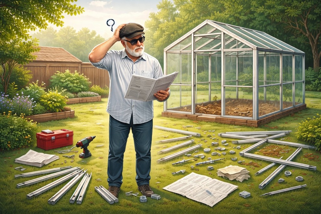 The greenhouse arrived flat-packed. The instructions looked clear. For once, I read them cover to cover before touching anything. One of the key rules: open the boxes in sequence, assemble one before moving to the next. Don’t jump ahead. Don’t improvise.